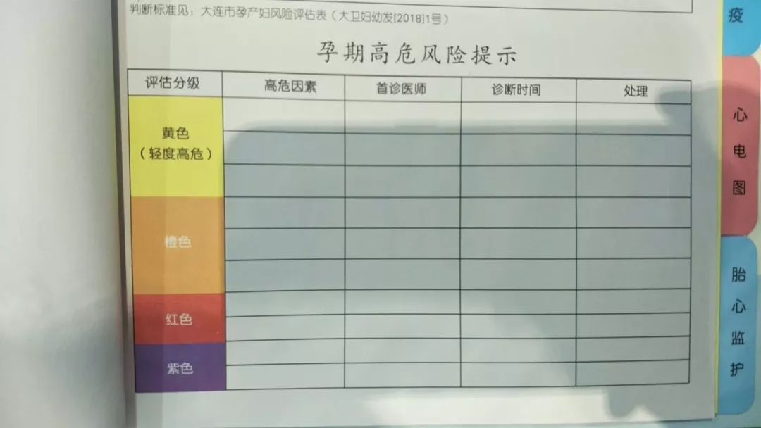 与此同时,孕妈在产检时,医生也会为孕妈进行高危筛查及时评定。按风险严重程度分别以绿(低风险)、黄(一般风险)、橙(较高风险)、红(高风险)、紫(传染病)五种颜色进行分级标识,对高危妊娠实行分级管理。每次产检后,医生都会根据高危孕产妇级别告知复诊时间,加强孕妈及家属宣教。此外,针对高危异常孕妈,设置多学科联合会诊门诊,制订个性化诊疗方案和应急预案。